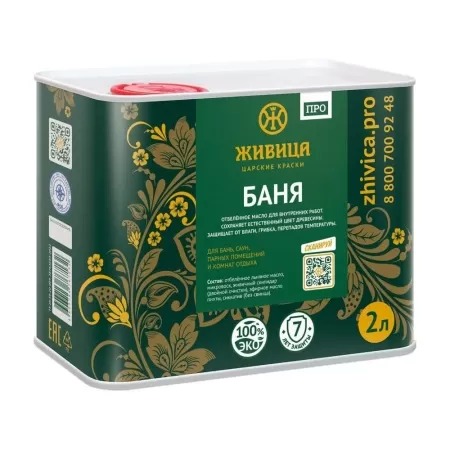 Надежная защита дерева от влаги и гниения - это пропитка для бани «Баня». Древесина внутри парной испытывает сильные перепады температуры и влажности, с которыми не справится обычная краска. Использование синтетических средств в парилке запрещено - это опасно для здоровья. Можно получить ожог или отравление испарениями. Для обработки парилок используют только натуральные средства. Баню или сауну внутри обрабатывают льняным маслом, которое защищает дерево, не закупоривая поры. «Баня» - 100% натуральный продукт из отбеленного льняного масла и микровоска, придающего поверхности эффект soft-touch. Область применения — Полы, двери, полки, стены внутри бань и саун.