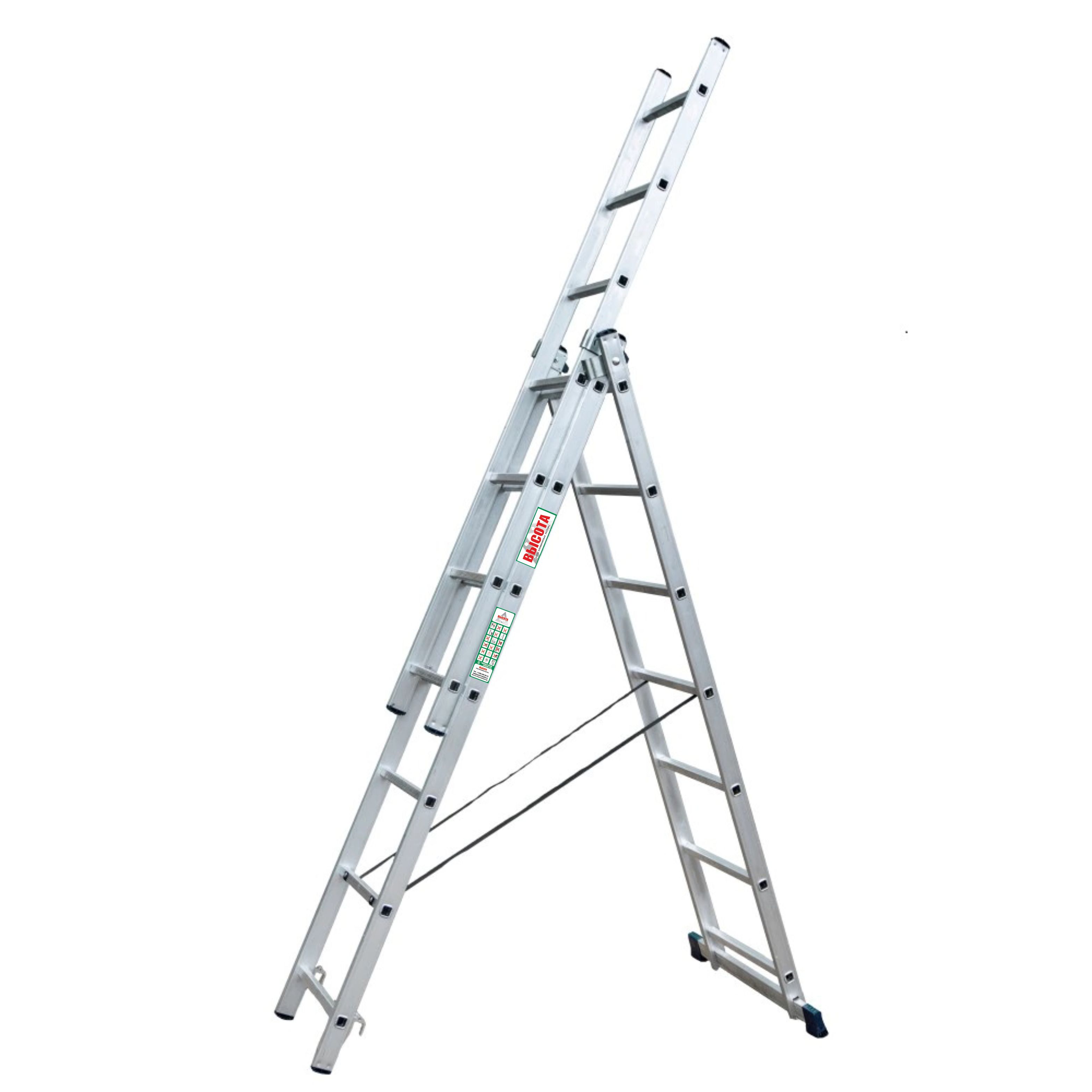 Алюминиевая трехсекционная лестница 3х7 - идеальное решение для выполнения различных задач на высоте. Эта лестница обладает высокой прочностью и надежностью, при этом она легкая и удобная в использовании. Максимальная рабочая нагрузка составляет 150 кг, что позволяет использовать лестницу с уверенностью даже для выполнения тяжелых работ. Изготовлена лестница из алюминия, что обеспечивает ее прочность и долговечность.