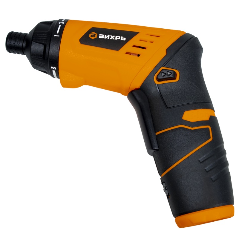 Аккумуляторная отвертка ручного типа Вихрь ОА-3,6-ТФ - это компактный инструмент, предназначенный для монтажа разнообразных крепежных элементов. Значение максимального крутящего момента составляет 5 Нм. В сочетании со скоростью вращения 250 об/мин это позволяет использовать прибор для решения ежедневных бытовых задач. Литий-ионный тип встроенного аккумулятора емкостью 1,5 А*ч обеспечивает высокую производительность работы. Время полного его заряда составляет 3 ч. Функция регулирования момента затяжки позволяет контролировать интенсивность воздействия в зависимости от используемого материала. Это особенно важно при сборке мебели.Аккумуляторная отвертка Вихрь ОА-3,6-ТФ имеет компактные размеры и малый вес 0,5 кг. Эргономичная рукоятка-трансформер позволяет менять положение для удобной работы и более надежного захвата. Таким образом пистолетная форма может приобретать вид прямой отвертки. Наличие фонарика делает возможным использование инструмента в недостаточно освещенных зонах. Функция реверса предназначена дл