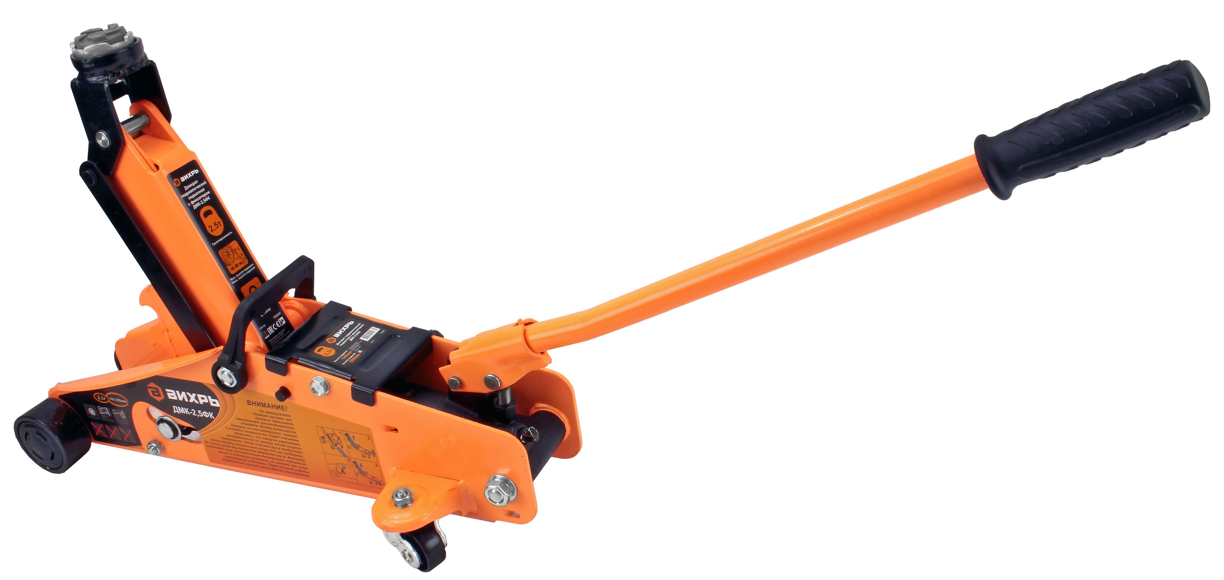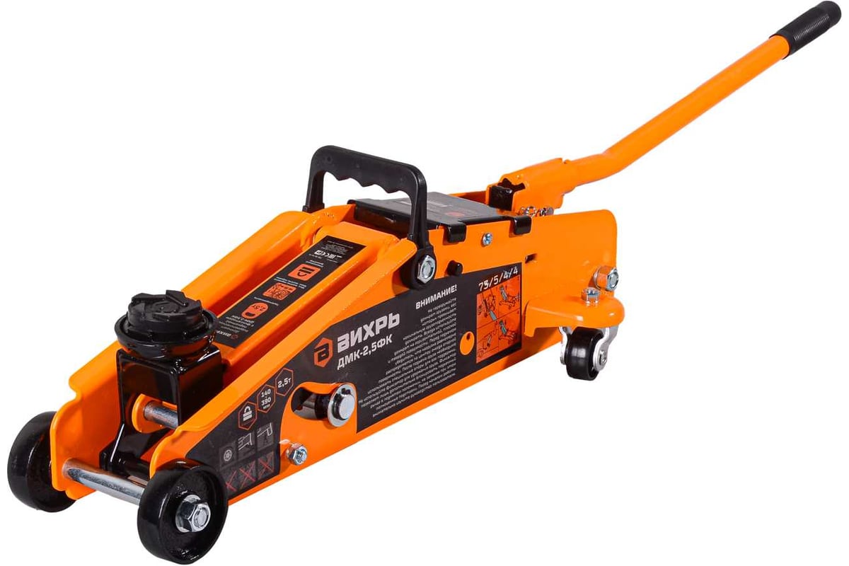 Гидравлический подкатной домкрат ДМК-2,5ФК Вихрь представляет собой устройство с ручным приводом, предназначенное для поднятия грузов. Отличается простотой обслуживания и надежностью в эксплуатации, позволяет при небольшом рабочем усилии осуществлять плавный подъем груза и его точную фиксацию на заданной высоте.