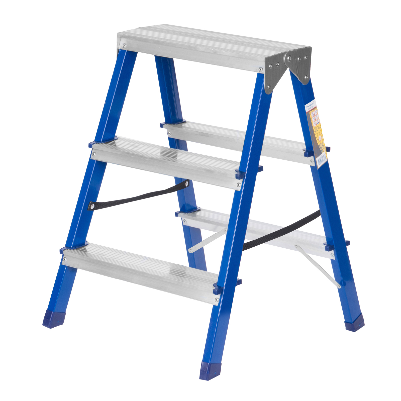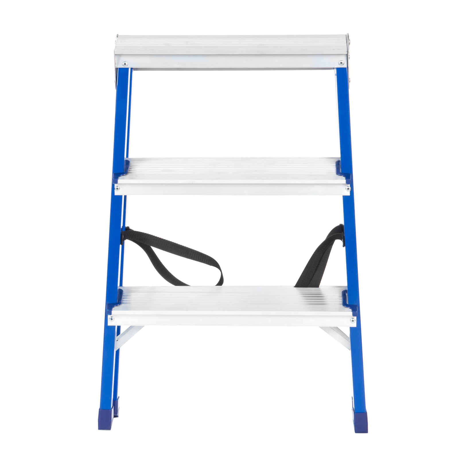 Двусторонняя стальная стремянка используется для бытовых нужд и ремонтных работ на небольшой высоте. Конструкция изготовлена из стали и алюминия. Подходит для работы одного или двух человек одновременно.Изделие имеет широкие рифленые ступени для безопасного подъема и спуска.Опорные ножки оснащены пластиковыми вставками для лучшей устойчивости на поверхности.Страховочные ремни удерживают стремянку в рабочем положении.В сложенном виде изделие отличается компактностью для удобного хранения.