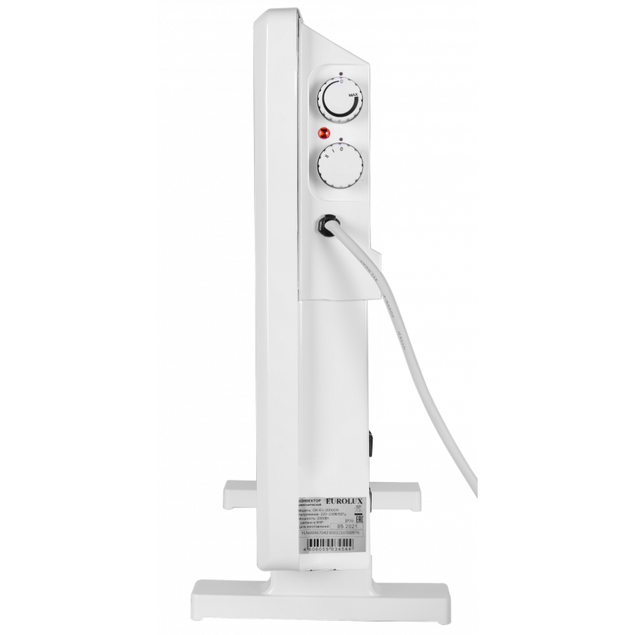 Конвектор Eurolux OK-EU-2000CH мощностью 2000 Вт способен обеспечить быстрый обогрев комнаты площадью до 25 кв. м и поддерживать заданную температуру в течение необходимого периода времени. Такое устройство пригодится в жилых домах, квартирах в межсезонье, в подсобных и служебных постройках в холодное время года.Электроконвектор работает от сети и оснащен термозащитой от перегрева. Мощность можно менять в зависимости от выбранного режима эксплуатации. С помощью вращающегося переключателя можно установить требуемую мощность, что позволит сократить потребление электроэнергии, изменить скорость обогрева помещения. Выбор температуры производится путем плавного вращения верхней ручки. Принцип работы конвекторного радиатора базируется на смешивании холодных и теплых потоков воздуха. Оптимальным решением для обеспечения качественной конвекции считается установка обогревательного прибора на пол. Небольшой вес прибора (4,3 кг) позволяет монтировать его и на стене. Опоры и крепеж для стены входят в комплектацию электро