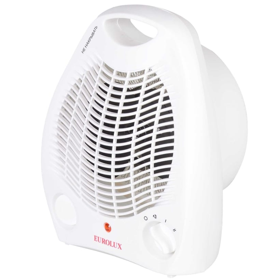 Eurolux TBC-EU-1 – модель электрического тепловентилятора мощностью 2000 Вт, с термозащитой, световой индикацией работы, терморегулятором, предназначенная для обогрева и вентилирования воздуха в помещениях площадью до 25 кв. м.Основу конструкции составляют спиральный нагревательный элемент и вентилятор, обеспечивающий принудительное нагнетание воздуха внутрь устройства и более быстрое размешивание теплых и холодных воздушных масс. Тепловентилятор работает в трех режимах: интенсивный нагрев, средняя мощность, вентиляция без участия нагревательного элемента. Устройство имеет систему термозащиты. В случае перегрева рабочей части или снижения потока воздуха, поступающего внутрь, прибор будет обесточен. В этом случае рекомендуется повернуть регулятор в режим OFF, отключить устройство от сети и дать ему остыть. В профилактических целях прибор следует периодически очищать от пыли. Корпус выполнен из белого пластика, имеет эргономичный стильный вид, оснащен ручкой для более удобного перемещения. Вес устройства – 1,1