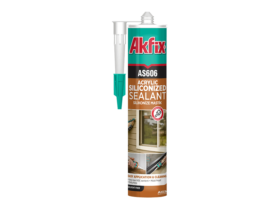 Akfix AS606 Силиконакриловый герметик 310 мл. белый арт. AA001 Akfix AS606 – однокомпонентный многоцелевой акриловый герметик. Содержит силикон, обеспечивающий высокую адгезию и эластичность. Характеристики: • После высыхания остается эластичным. • Может использоваться для пористых поверхностей (кирпич, бетон, дерево и т.д.). • Прост в применении и очистке. • Водостойкий. • Устойчив к атмосферным явлениям (дождь, снег, прямые солнечные лучи). • Не содержит растворители. • После высыхания можно красить. • Без запаха.