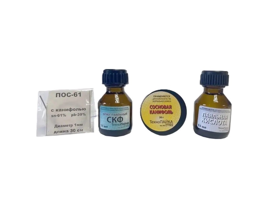 Универсальный набор включает в себя 4 самых популярных расходных материалов, необходимых для работы с паяльником. Будет полезен как для новичков, так и для опытных мастеров, которые занимаются пайкой деталей из различных металлов, работают в широком диапазоне температур. С помощью основой канифоли процесс спаивания становится более качественным и надежным, так как она помогает бороться с образованиями оксидных пленок и прочих негативных явлений на поверхности деталей.