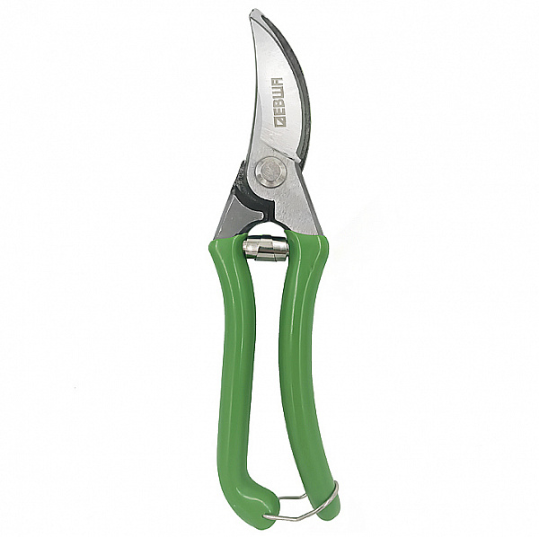 Секатор из легированной стали. Дополнительная закалка лезвий. Прецизионная заточка. Конструкция цельнокованная (единое целое с рукоятками). Обрезиненные рукоятки для удобного захвата. Фиксатор-скоба.