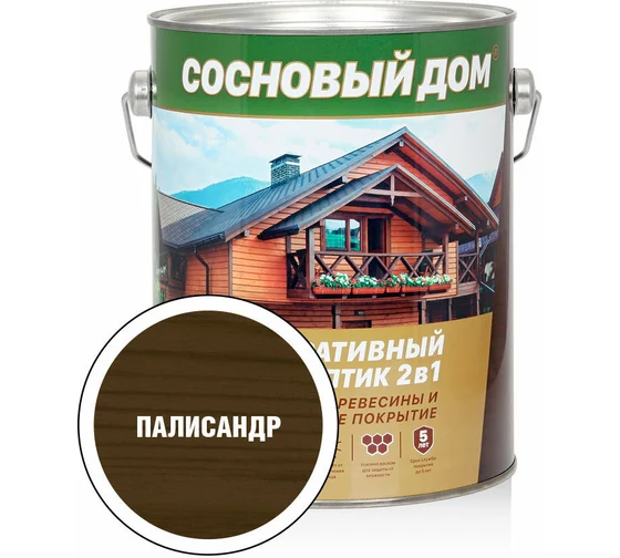 Декоративно-защитный состав для древесины ЗАО Декарт Сосновый дом палисандр предназначен для экономичной финишной отделки поверхности пиленой и строганой древесины снаружи и внутри помещений. Образует полуматовое покрытие. Преимущества: - Для наружных и внутренних работ - Наносится на поверхность строганой и пиленой древесины - Образует полуматовое покрытие - Сохраняет видимой текстуру и подчеркивает рисунок натуральной древесины - Защищает древесину от воздействия УФ-излучения и атмосферной влаги - Предохраняет от воздействия влажности, грибков, гнили, плесени, синевы, насекомых-древоточцев