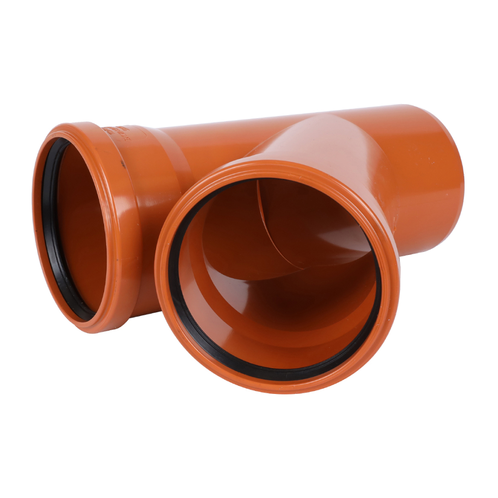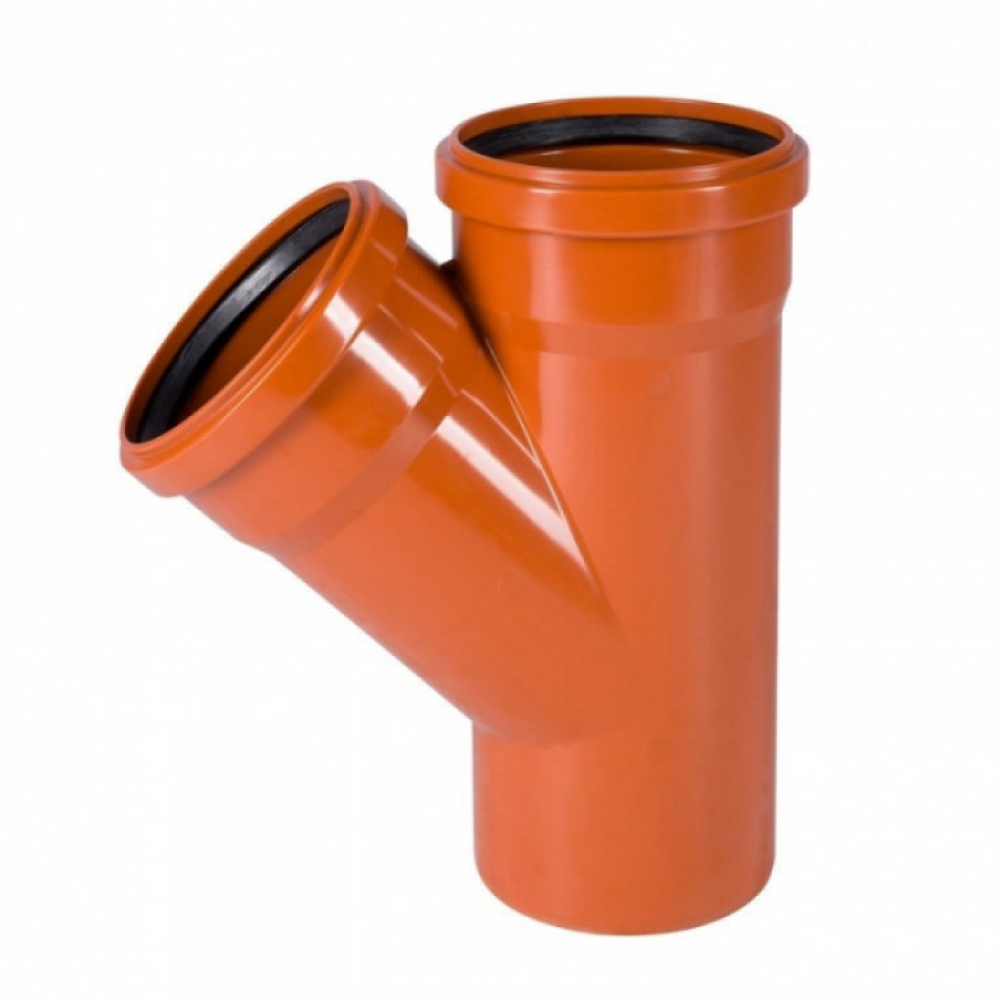 Тройник канализационный предназначен разветвления трубопроводов под углом 45 градусов одного диаметра в системах наружной канализации.