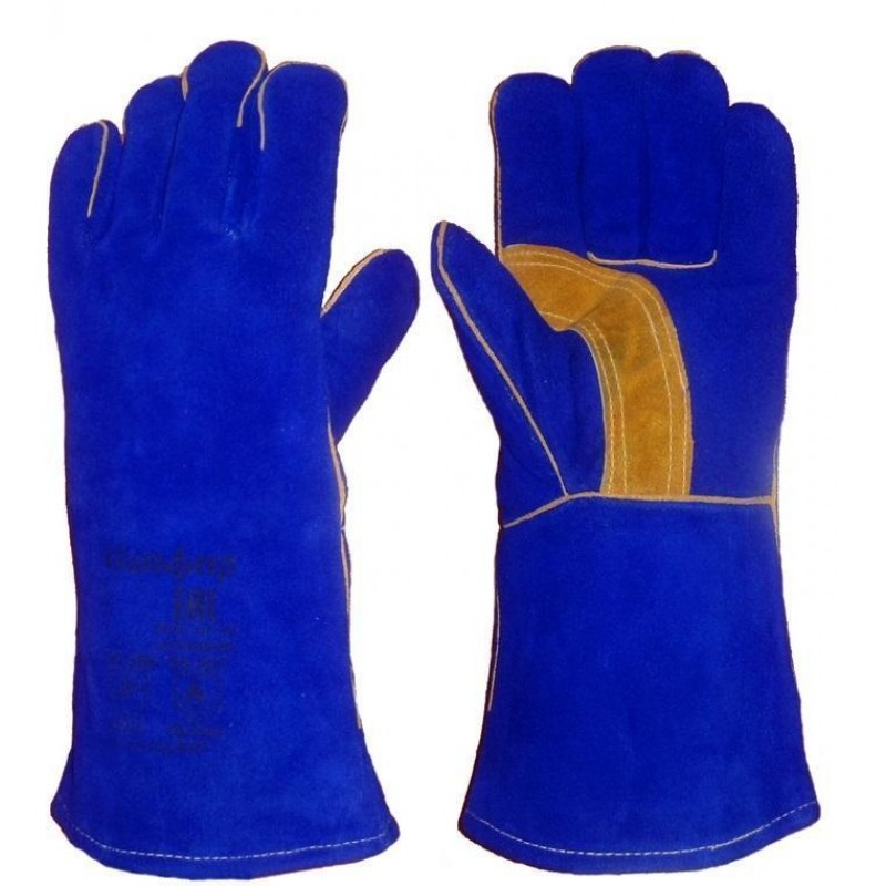 Краги из спилка желтого цвета для защиты от искр и брызг расплавленного металла. Флисовая подкладка на ладонной части обеспечивает дополнительную теплоизоляцию. На манжете - подкладка из хлопковой ткани. Усиление дополнительным слоем спилка в области большого пальца.