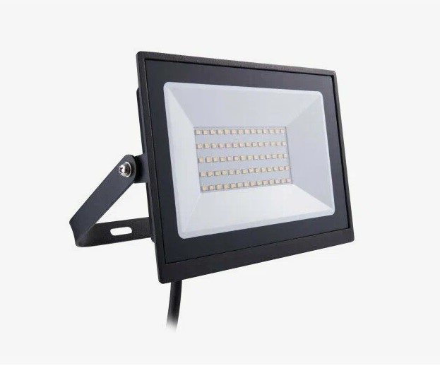 Прожектор подходит для освещения крупных территорий, может использоваться в различных условиях, включая строительные площадки, парковки и другие открытые пространства.
