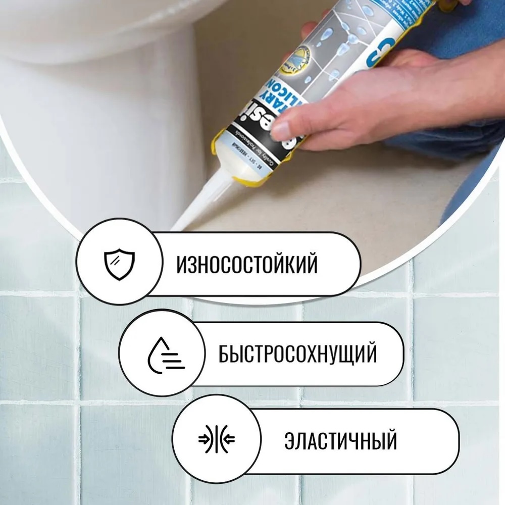 Силиконовая затирка ЦС 25, CS 25 предназначена для герметизации угловых, деформационных и примыкающих к санитарно-техническому оборудованию (ваннам, раковинам и др.) швов плиточных облицовок в помещениях с повышенной влажностью: ванных комнатах, душевых, кухнях, туалетах и т.д. Обладает высокой адгезией к эмалированным поверхностям, стеклу, фарфору и фаянсу. Формула Trio Protection обеспечивает длительную стойкость к грибку и плесени. Благодаря высокой стойкости к УФ-излучению и озону может применяться при наружных работах. Не имеет адгезии к резине, битуму, гудрону, тефлону, полиэтилену и материалам, выделяющим масла, пластификаторы или растворители. Содержит фунгициды и при отверждении выделяет уксусную кислоту, поэтому не пригодна для контакта с пищевыми продуктами, питьевой водой, мрамором, известняком, зеркалами, корродирующими металлами (свинцом, медью, цинком, железом) и герметизации аквариумов.