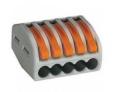 Соединительная клемма с рычажком WAGO 222-415 5-ти проводная, 0,08-2,5 кв.мм, 400В, 32А, без пасты, 40 шт. 2652 изготовлена из пластика, который способен изолировать проводники и обезопасить использование. Изделие служит для присоединения пяти медных проводов. Рычажки предназначены для надежного зажима кабелей.
