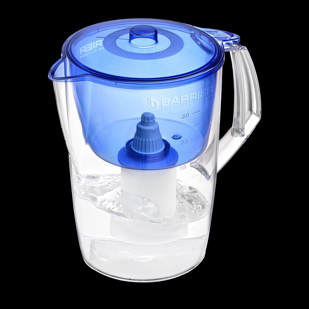 Кувшин классической формы для небольшой семьи. Воронка автоматически откидывается при наклоне кувшина. Конструкция носика защищает воду от попадания пыли. Кувшин можно мыть в посудомоечной машине. В комплекте с кувшином идет стартовая кассета "БАРЬЕР Старт". Умягчает воду, защищает от хлора, тяжелых металлов и других вредных примесей. Одна кассета БАРЬЕР способна заменить несколько сотен пластиковых бутылок