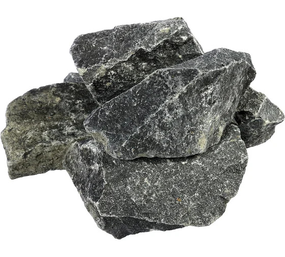 Экологически чистый камень вулканического происхождения темного цвета, похожий на мрамор габбро-диабаз – это один из основных камней подходящий для саун и бань, который укладывают на нижний слой каменки. Камень добывается в Карелии и на Урале, где находятся большие запасы этого камня. Преимущество камня – низкая цена. Уникальная термостойкость и высокая тепловодность габбро-диабаза сделало его идеальным для бани. Сверху на первый слой камня рекомендуется укладывать банные камни, обладающие целебными свойствами, такие как царский камень, жадеит, белый кварц и другие. Габбро-диабаз будет обеспечивать долгое тепло в бане, а целительный пар дадут верхние камни. Недостатком габбро-диабаза является то, что камень при сильном перегреве может растрескаться, а при долгом использовании выделяет малоприятный запах. Нежелательно поливать камни в бане настоями с эфирными маслами, так как на камне очень быстро образуется нагар. Используемый габбро-диабаз в парных, необходимо часто перебирать, удалять испорченные и растрескавшиеся камни. Во-первых - для безопасности, во-вторых - получающийся при разрушении песок легко может засорить колосники в печке. Максимальный срок использования габбро-диабаза – 2 года.
