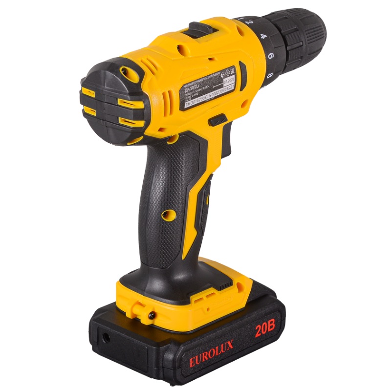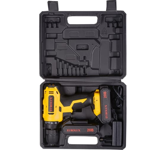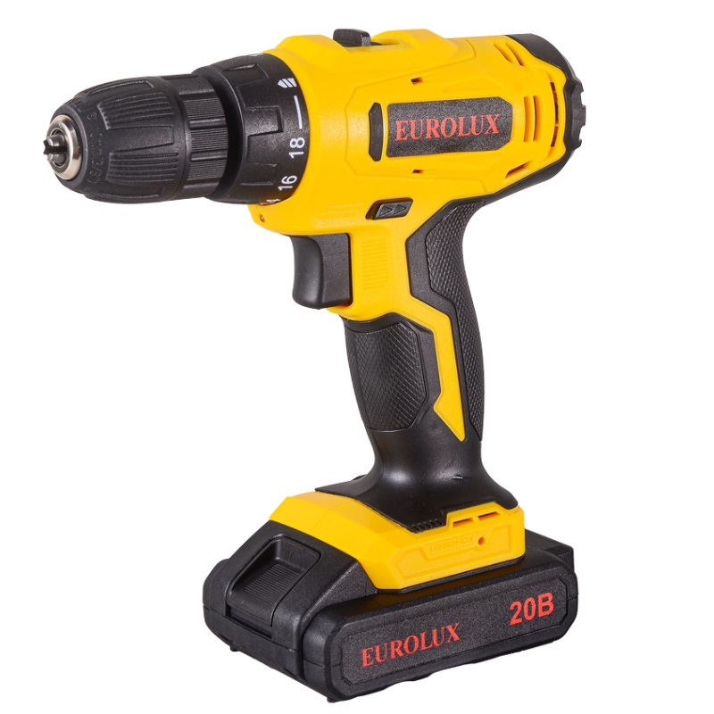 Аккумуляторная дрель-шуруповерт Eurolux ДА-20/2Li – ручной электроинструмент с регулируемым крутящим моментом, предназначенный для закручивания и откручивания шурупов, саморезов, винтов и других видов крепежных изделий, а также сверления отверстий в различных конструкционных материалах.