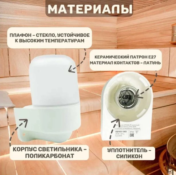 Предназначен для освещения помещений с повышенной влажностью и экстремально высокими температурами, таких как сауны, душевые, парные. Также подходит для освещения пекарен, покрасочных цехов, подъездов, подвалов.