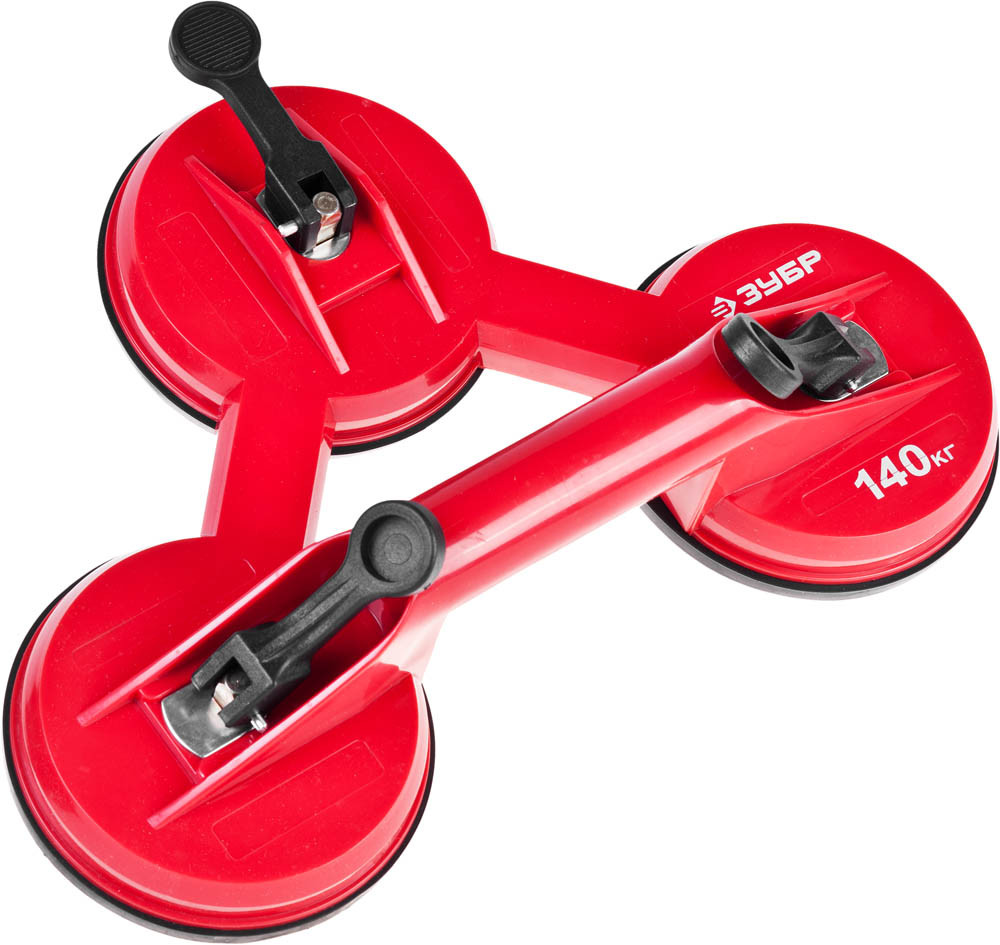 Пластмассовый тройной стеклодомкрат ЗУБР 140кг 33724-3 представляет собой идеальный вариант для крепкого захвата и надежной транспортировки больших и тяжелых стекольных или зеркальных полотен, а также другого груза с гладкой поверхностью. Стеклодомкрат имеет вакуумный принцип работы. Эргономичная рукоятка обеспечивает комфортное удержание. Противоскользящее основание выполнено из резины специального состава.