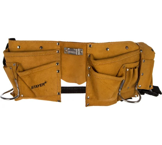 Кожаный пояс для инструментов STAYER MASTER, 10 карманов, 2 скобы 38510 - приспособление для хранения во время работы и переноса инструмента. Выполняя монтажные работы, вы сможете положить в карманы ручной инструмент и крепеж. Пояс имеет десять отделений и две скобы, в которых можно закрепить молоток. Пояс изготовлен из натуральной кожи.