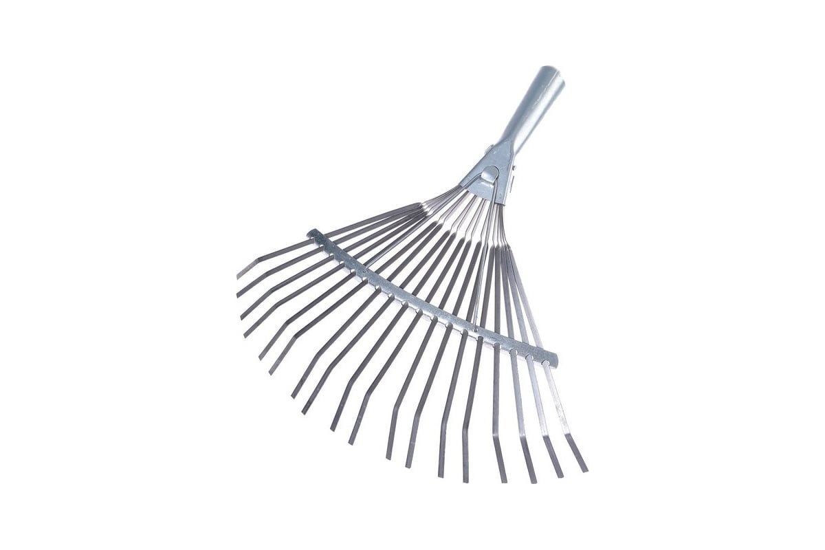 Веерные пластинчатые грабли без черенка 22 зуба, оцинкованные используются для очистки территорий от павших листьев, скошенной травы и другого мелкого садового мусора. Широкая рабочая часть захватывает большие участки, что ускоряет процесс работы. Инструмент поставляется без черенка, что позволяет подобрать наиболее подходящий по длине и материалу.
