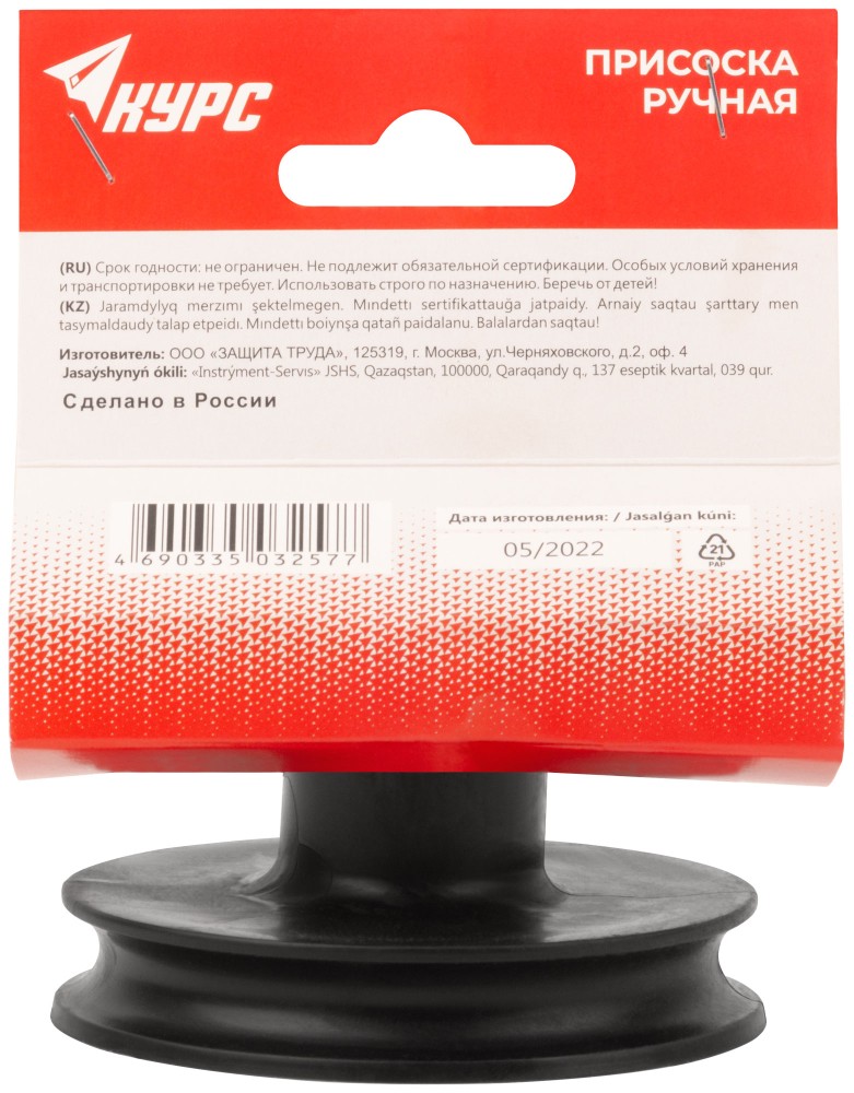Присоска ручная. Предназначена для кратковременного удержания изделий из стекла, глазурованной керамики, стекол и зеркал. Используется при проведении монтажных и отделочных работ. Максимальная нагрузка не более 20 кг при тем-пературе от +5 °С до +30 °С. Материал: термопластичный эластомер.