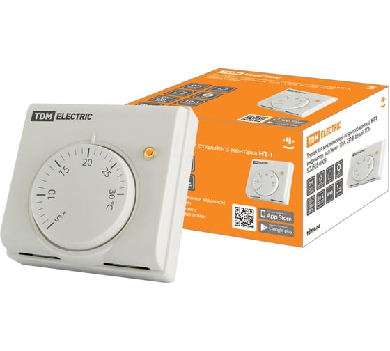 Термостат механический открытого монтажа НТ-1 (индикатор; вкл/выкл; 10 А; 230 В; белый) TDM SQ2503-0009 служит для поддержания заданной температуры в помещении.