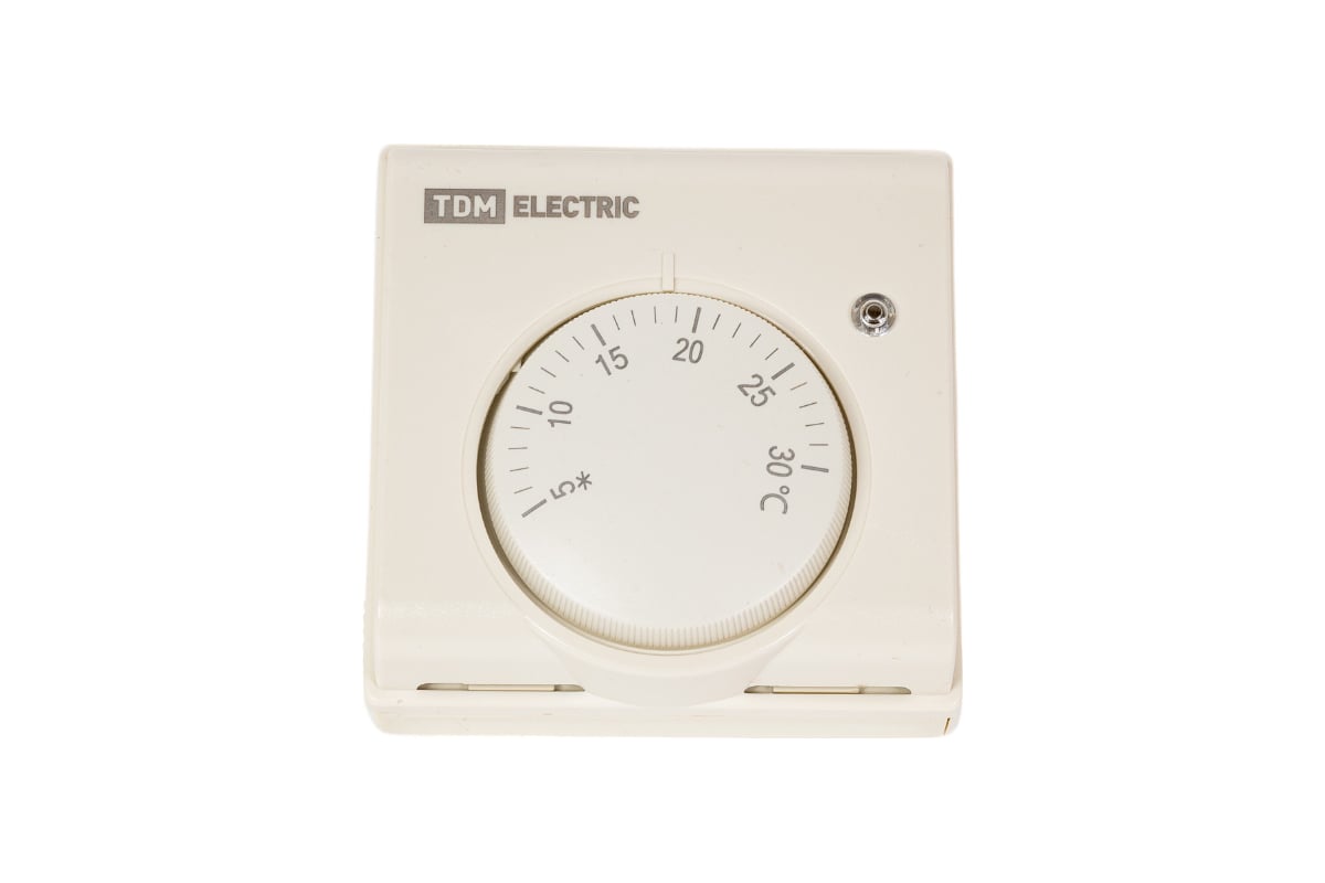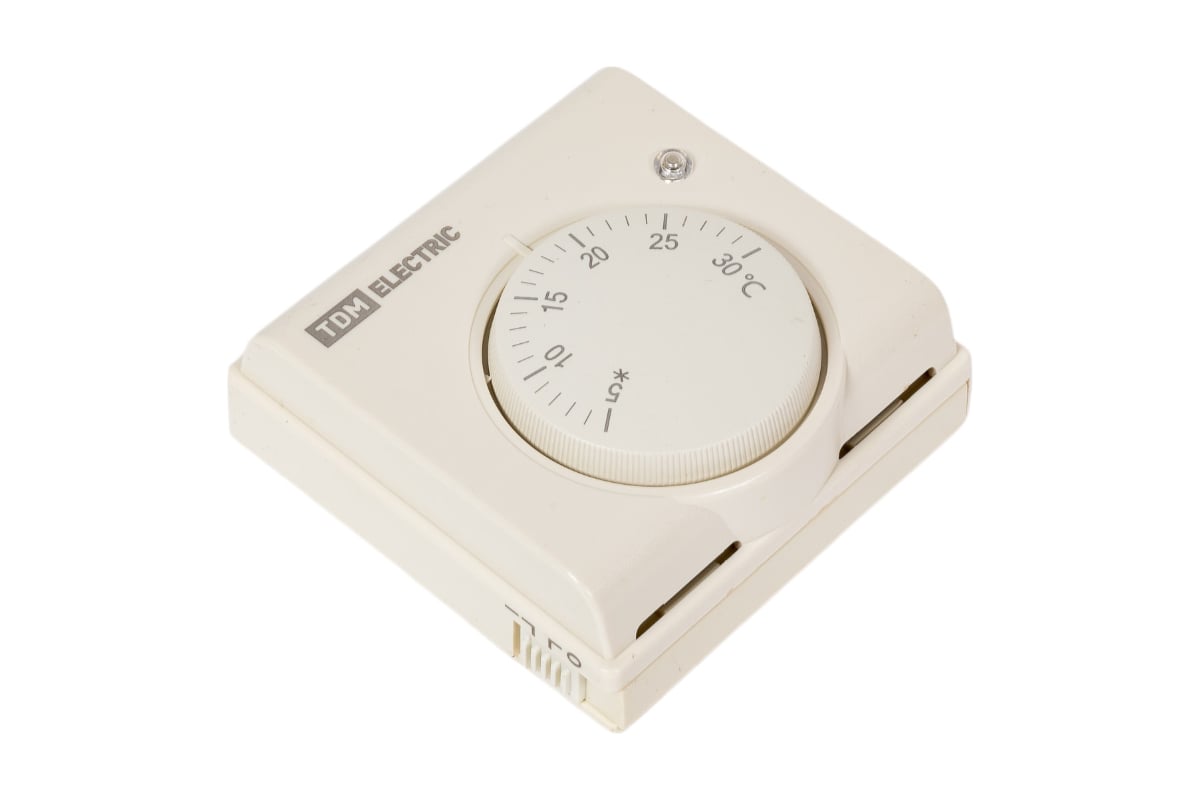 Термостат механический открытого монтажа НТ-1 (индикатор; вкл/выкл; 10 А; 230 В; сл. кость) TDM SQ2503-0010 служит для поддержания заданной температуры в помещении