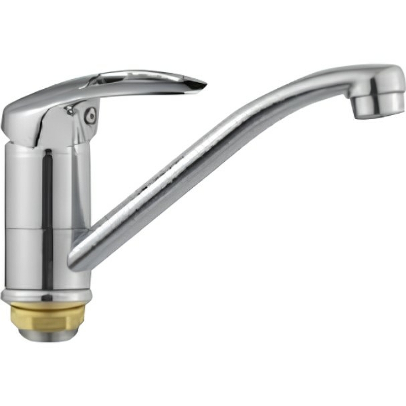 Смеситель для кухни Frap F4539-B, прибор имеет одну рукоять чтобы регулировать напор воды. Наличие аэратора в приборе обеспечивает равномерную подачу воды и ее смягчение. Сетка отфильтровывает различные примеси. Монтируется на шпильке. На нижнюю часть прибора устанавливается резинка, дабы смеситель ничего не царапал и не ездил по столешнице, затем вкручиваются шпильки. Получившуюся конструкцию устанавливаем в отверстие, снизу насаживаем на крепление и затягиваем Смеситель выполнен в новом современном стиле, необычная модель в ярко выраженном дизайнерском исполнении. Приборы из силумина наделены кратковременным сроком работы из-за низких качеств этого материала. При всем этом, это очень хороший вариант временного смесителя, большим преимуществом которого будет небольшая цена. Известная модель, которая обладает поворотным изливом. Его можно вращать, что существенно повышает эффективность применения сантехнического прибора. Внутри данного смесителя имеется керамический картридж 35 мм, который смешивает воду для