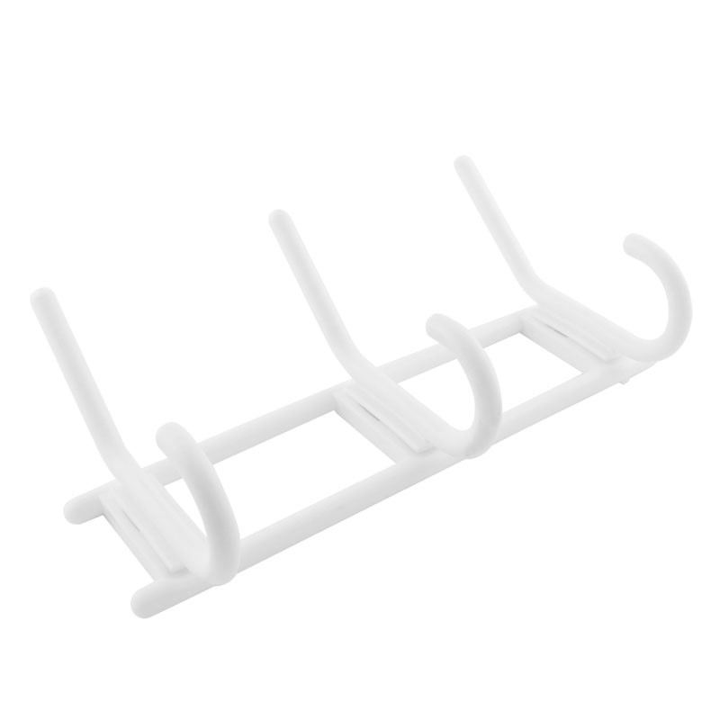Вешалка 3-х крючковая снежно-белого цвета выполнена из прочного ABS пластика. Крючок-вешалка крепится на стену и используется для хранения легких вещей: ветровок, курток, шляп, сумок и т.п. Расстояние между крючками 10 см. Расстояние между отверстиями 10,3 см. Диаметр отверстия 5 мм. Длина вешалки 25,5 см. Пластиковая вешалка имеет эстетичный вид и может использоваться в любой комнате, прихожей, в ванной комнате, на балконе и т.д.