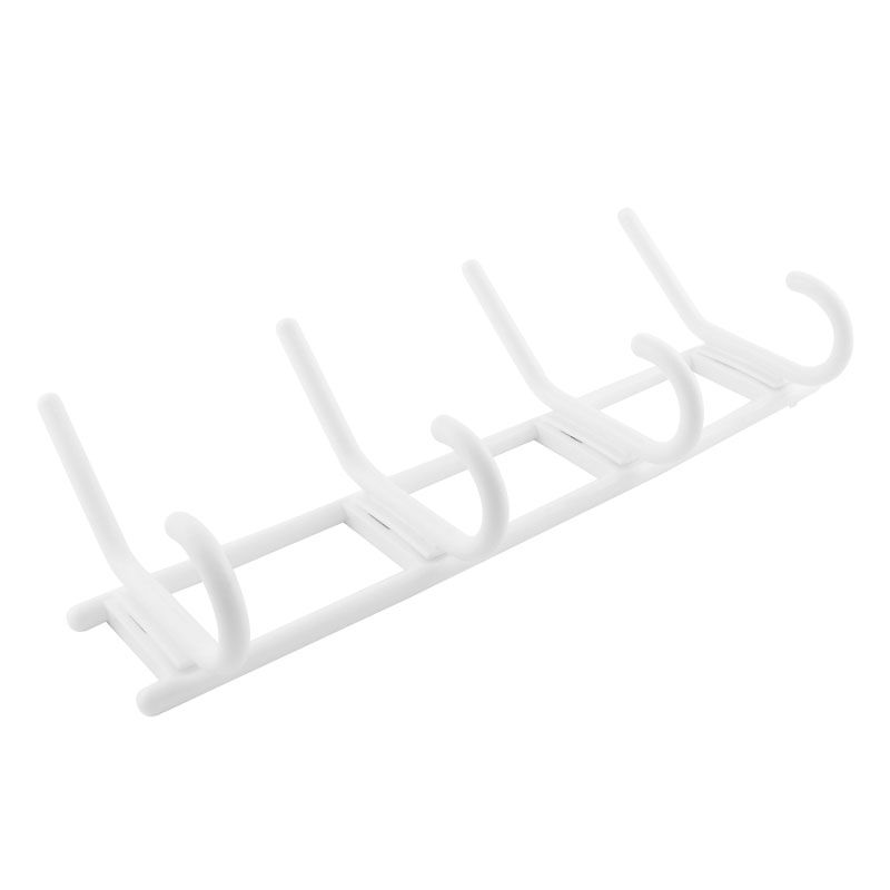 Вешалка 4-х крючковая снежно-белого цвета выполнена из прочного ABS пластика. Крючок-вешалка крепится на стену и используется для хранения легких вещей: ветровок, курток, шляп, сумок и т.п. Расстояние между крючками 10 см. Расстояние между отверстиями 10,3 см. Диаметр отверстия 5 мм. Длина 35,5 см. Пластиковая вешалка имеет эстетичный вид и может использоваться в любой комнате, прихожей, в ванней комнате, на балконе и т.д.