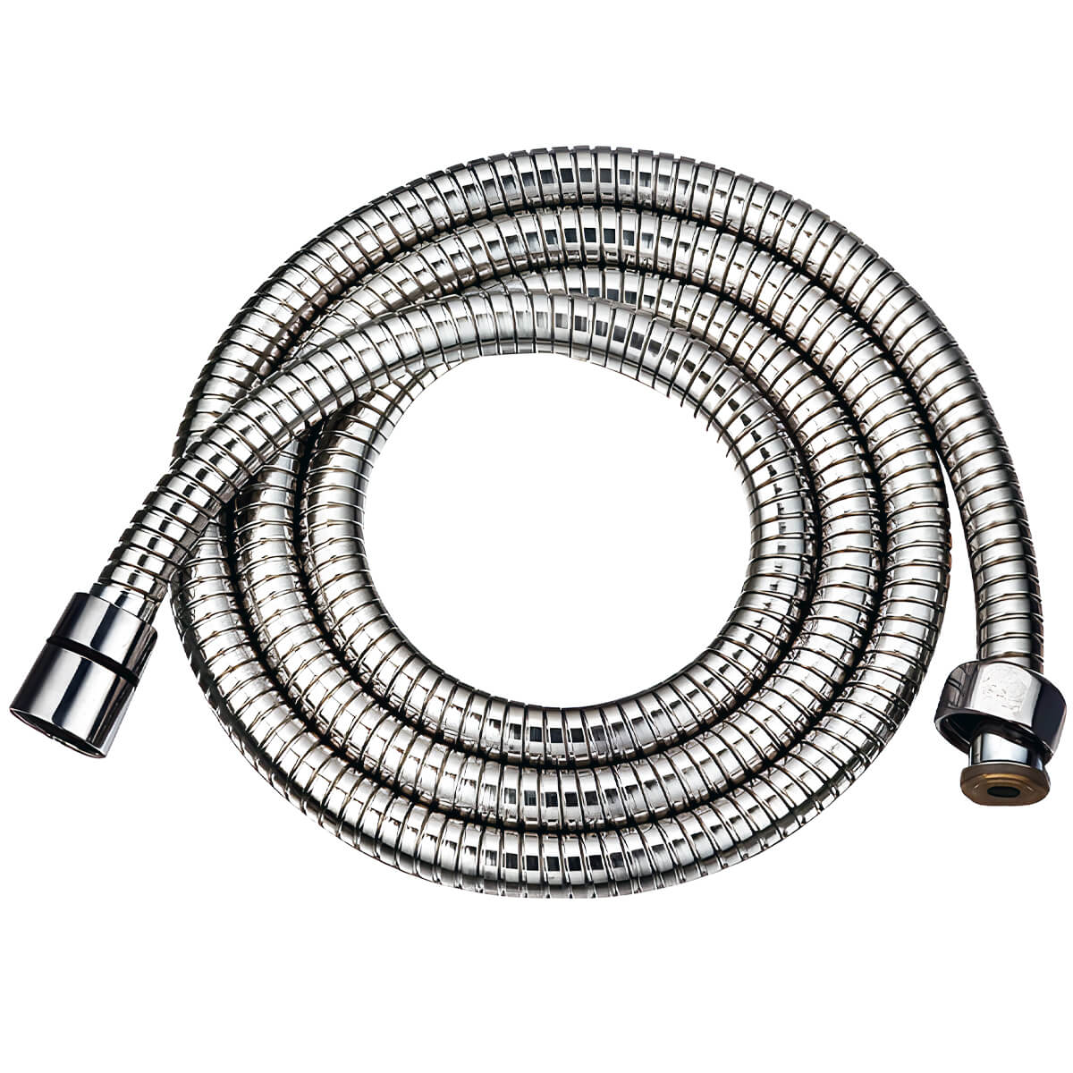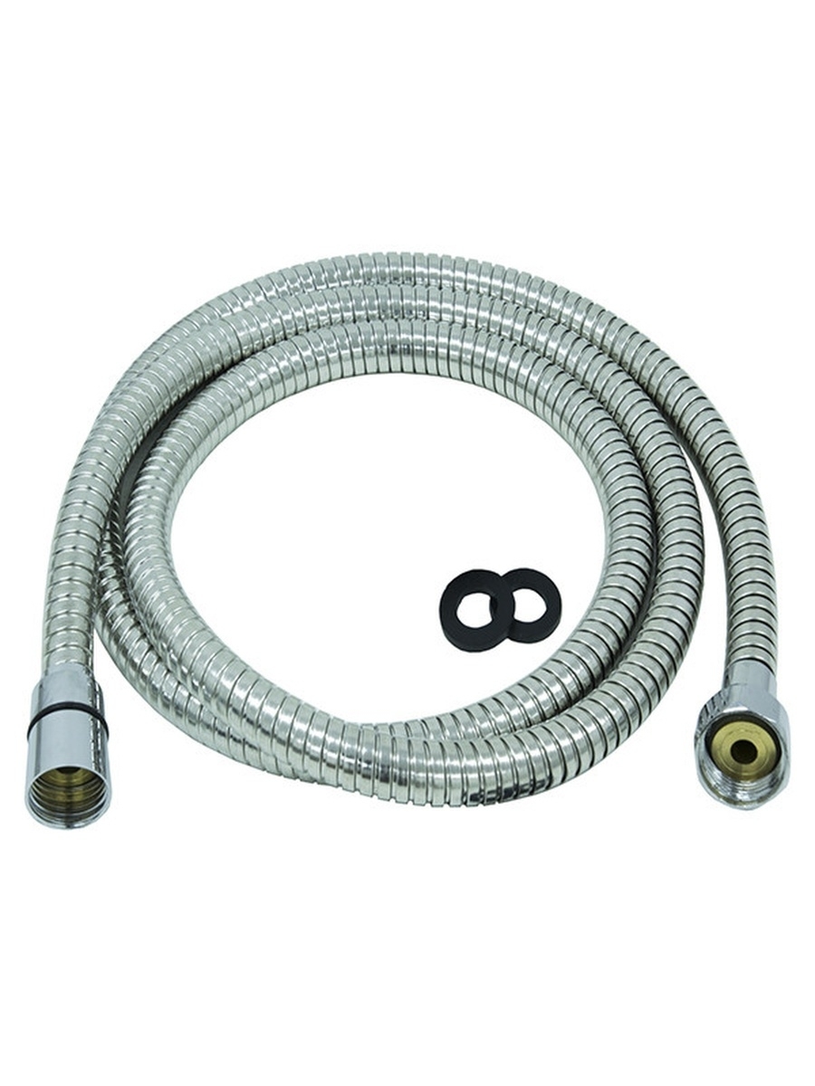 Универсальный гибкий шланг для душа с внешней оболочкой из нержавеющей стали и латунными фитингами. Металлизированная оплетка с двойным замком.