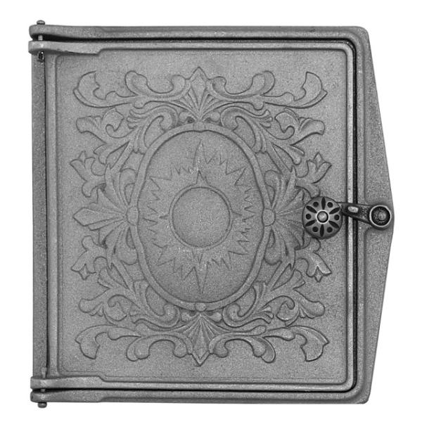 Топочная дверца предназначена для подачи дров в топку и изоляции пламени от помещения. Отлитая печная дверка может служить не просто по своему прямому функционалу, но и дополнять интерьер помещения особым шармом. Данная чугунная дверца украшена барельефным рисунком , также обращает на себя внимание удлиненная ручка. Открывание дверки справа налево.