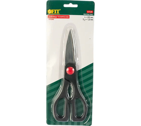 Технические ножницы 200 мм FIT 67320 применяются для выполнения различных работ как в технических сферах деятельности, так и в быту: резки различных материалов, а также раскалывания чего-либо, например, орехов. Ножницы состоят из пластиковых рукояток и износостойких нержавеющих стальных лезвий.