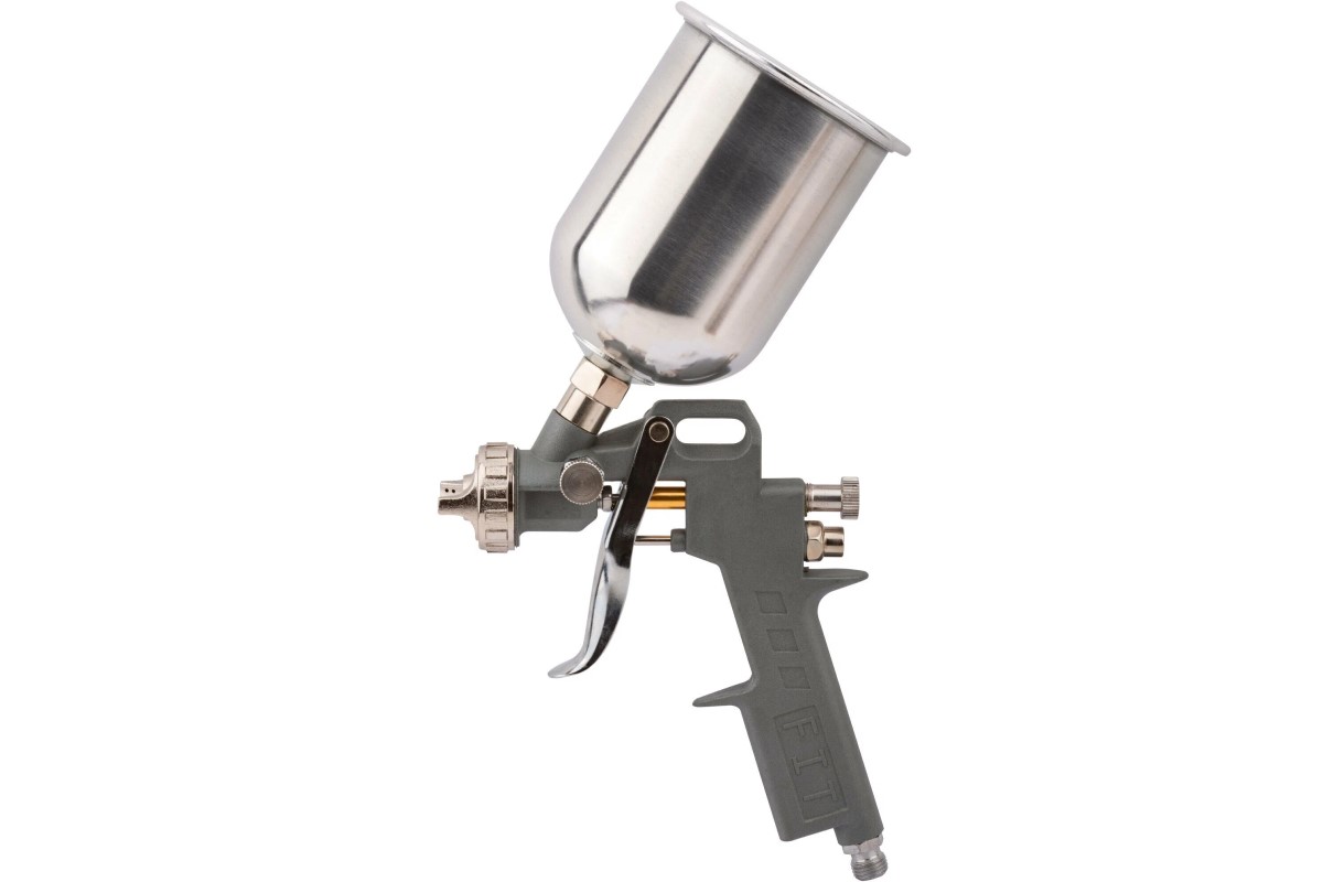 Пневматический краскопульт FIT DIY 81003 соединяется с пневмокомпрессором и расходует 140-200 л/мин. Служит для нанесения водоэмульсионных красок, синтетических эмалей, полиуретановых эмалей, эпоксидных эмалей, нитроэмалей. Оснащен алюминиевым верхним бачком объемом 0.6 л. Предусмотрена возможность регулировки расхода краски, что позволяет добиться более эффективного результата.