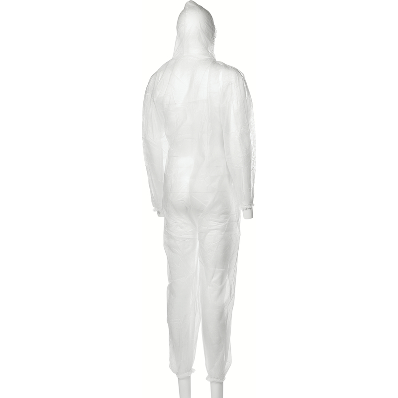 Одноразовый комбинезон 'Каспер' предназначен для соблюдениясанитарно-гигиенических норм в различных сферах деятельности. Основные сферы применения комбинезона 'Каспер' — это пищевая промышленность, строительство, производство мебели, сельское хозяйство, автомобилестроение и т. д. Комбинезон надевается поверх основной одежды. Одноразовый комбинезон 'Каспер' сшит с использованием утягивающих резинок на запястье, нижней части брюк и на капюшоне, оснащензастежкой-молнией. Рассчитан на одноразовое применение, поэтомукакого-либо ухода за ним не предполагается. Невлагостойкий. Комбинезон одноразовый может применяться при температуре от −25 °C до 40 °C. Размер 56–58, XXL. Рост 165–185.