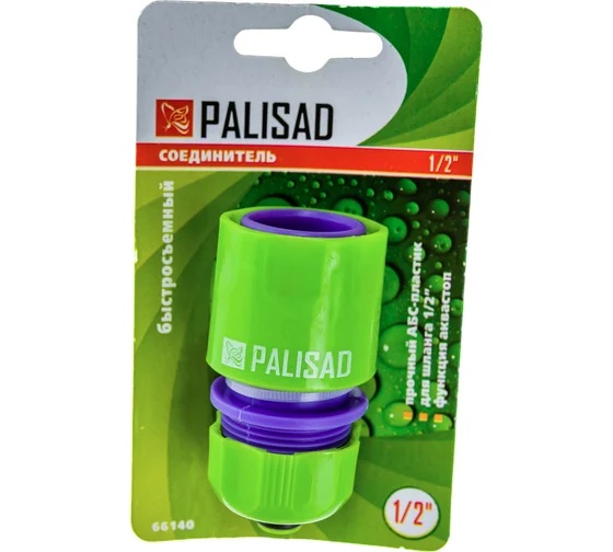 Пластмассовый быстросъемный соединитель Palisad 66140 с клапаном «аквастоп» совместим со шлангами диаметром 1/2"" и позволяет подключать их к распыляющим насадкам. Будет полезен при монтаже системы орошения на дачном участке.