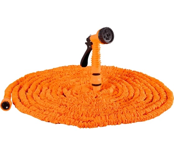 Набор для полива с растягивающимся шлангом 22м Вихрь состоит из растягивающегося латексного шланга длиной 22 метров, насадок для полива и крепления. Шланг имеет специальную конструкцию, которая позволяет ему расширяться до 3 раз своей первоначальной длины при подаче воды и сжиматься обратно при ее отключении. Это делает его очень удобным в использовании и позволяет экономить место при хранении. Набор для полива оснащен пистолетом-распылителем с 7 режимами, который позволяют выбрать нужный режим полива в зависимости от потребностей растений. Кроме того, он имеет быстросъемные соединители и адаптер-переходник для удобства подключения.