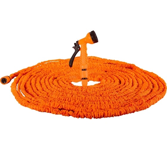Набор для полива с растягивающимся шлангом 50м Вихрь состоит из растягивающегося латексного шланга длиной 50 метров, насадок для полива и крепления. Шланг имеет специальную конструкцию, которая позволяет ему расширяться до 3 раз своей первоначальной длины при подаче воды и сжиматься обратно при ее отключении. Это делает его очень удобным в использовании и позволяет экономить место при хранении. Набор для полива оснащен пистолетом-распылителем с 7 режимами, который позволяют выбрать нужный режим полива в зависимости от потребностей растений. Кроме того, он имеет быстросъемные соединители и адаптер-переходник для удобства подключения.