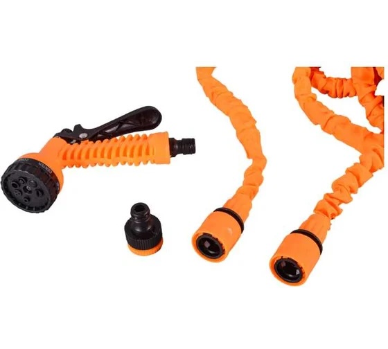 Набор для полива Вихрь состоит из растягивающегося латексного шланга длиной 80 метров, насадок для полива и крепления. Шланг имеет специальную конструкцию, которая позволяет ему расширяться до 3 раз своей первоначальной длины при подаче воды и сжиматься обратно при ее отключении. Это делает его очень удобным в использовании и позволяет экономить место при хранении. Набор для полива оснащен пистолетом-распылителем с 7 режимами, который позволяют выбрать нужный режим полива в зависимости от потребностей растений. Кроме того, он имеет быстросъемные соединители и адаптер-переходник для удобства подключения.