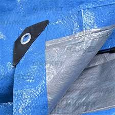 Тент тарпаулин размером 5×6 м, плотностью 180 г/м², изготовлен из прочного полиэтиленового материала с двусторонним ламинированным покрытием (синий/серебро), обеспечивающим водо- и УФ-стойкость. По периметру тента расположены люверсы диаметром 12 мм с шагом 1 м для удобства крепления.