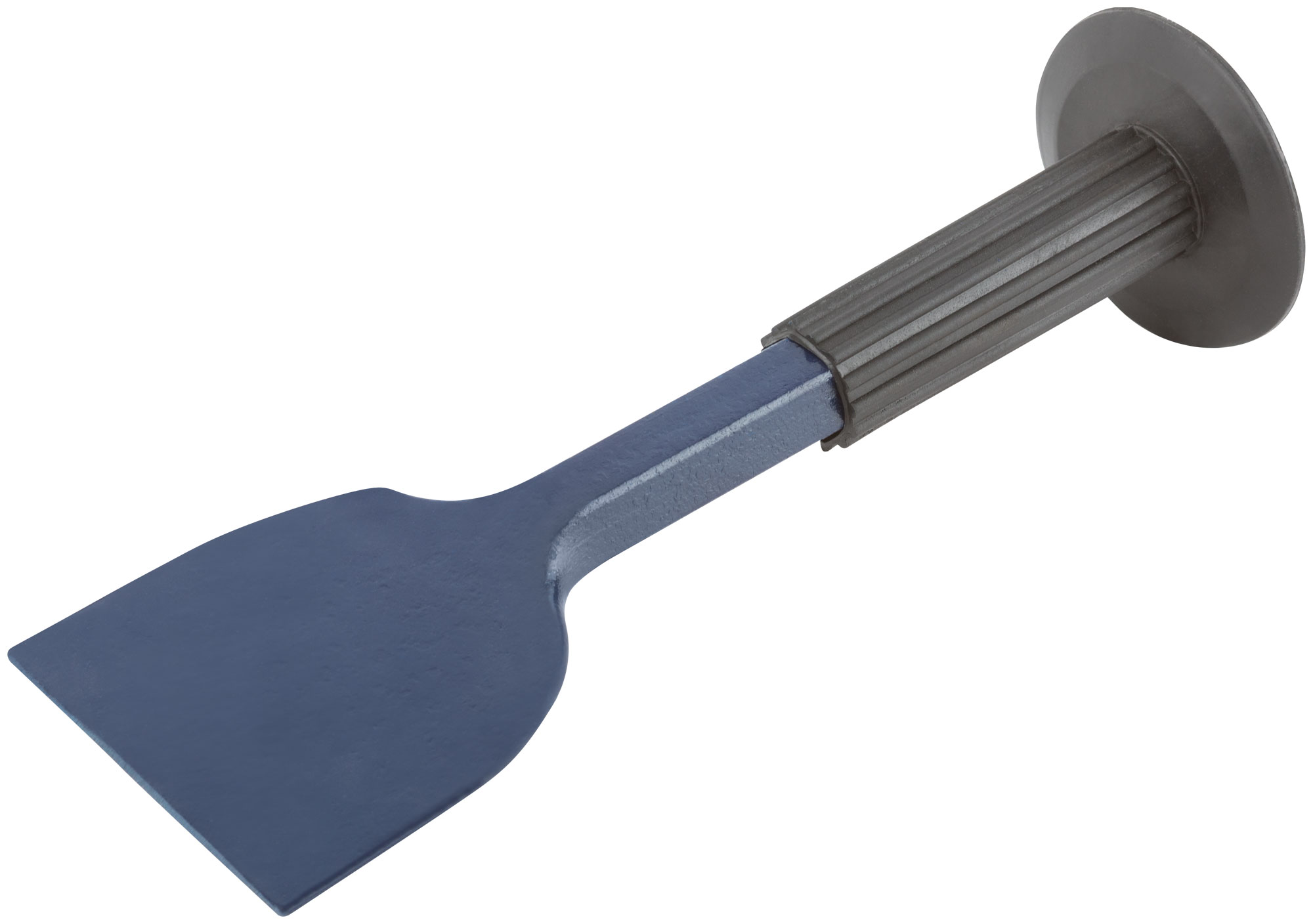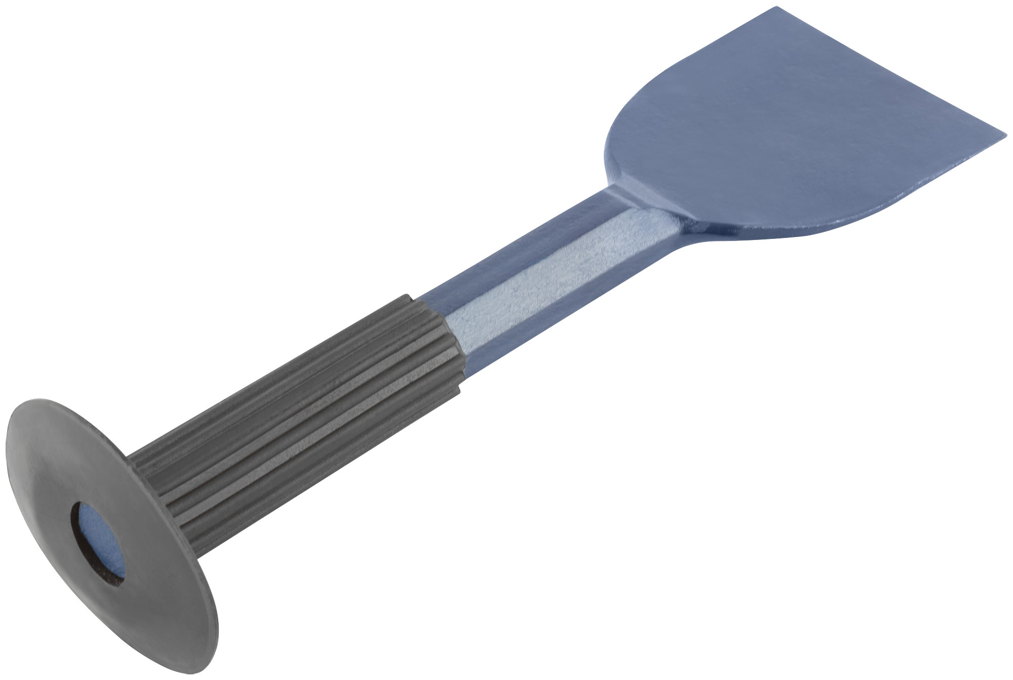 Широкое зубило предназначено для работы с каменной кладкой. Инструмент оснащен усиленным прорезиненным протектором, защищающим от ударов. Выполнено из высокопрочной инструментальной стали, что обеспечивает надежность и долговечность.