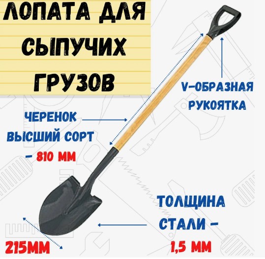 Лопата для сыпучих грузов предназначена для погрузочно-разгрузочных работ с песком, щебнём, асфальтом и другими сыпучими материалами.