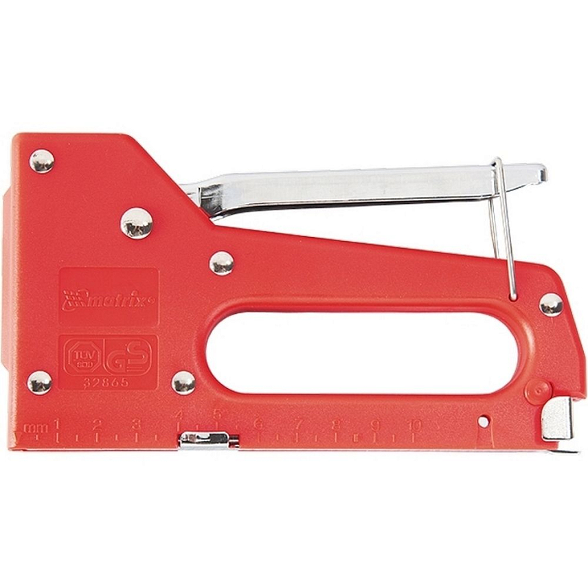 Пластиковый мебельный степлер Matrix 40907 используется с короткими скобами типа 53 размером 4-8 мм. Применяется для закрепления на деревянном основании тонких листовых материалов — оргалита, ДСП, ДВП, фанеры, пленки или утеплителя. Инструмент будет полезен для выполнения бытовых работ по перетяжке кресел или стульев, а также сборке мебели.