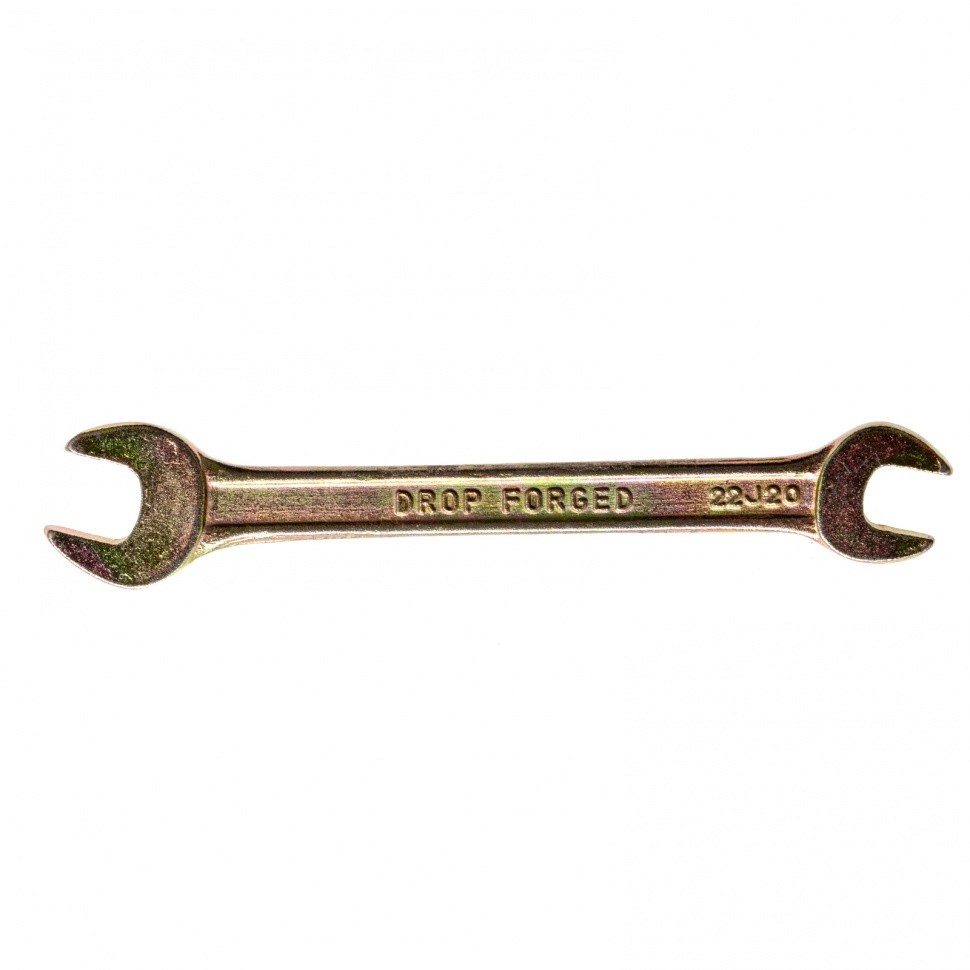 Рожковый ключ Сибртех 14303, 8 х 10 мм, с покрытием из желтого цинка, предназначен для закручивания и откручивания резьбовых крепежей с шестигранными головками. Имеет две рожковые части с размером зева 8 и 10 мм. Губки расположены под небольшим углом к оси тела ключа, что повышает удобство работы в ограниченном пространстве. Инструмент пригодится при проведении монтажных работ, сборке и разборке оборудования, для ремонта техники, а также будет полезен в быту.