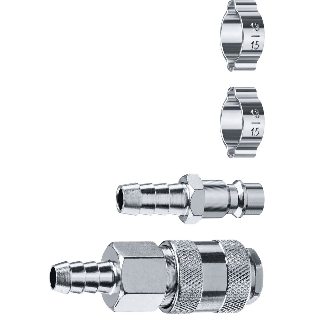 Набор переходников "елочка" - рапид муфта, рапид штуцер - "елочка" 10 мм, обжимные хомуты 2 шт ЗУБР 64920-10-H применяется для формирования разнообразных пневмосистем. Высокая точность изготовления обеспечивает надежность и герметичность. Обжимной хомут входит в комплект.