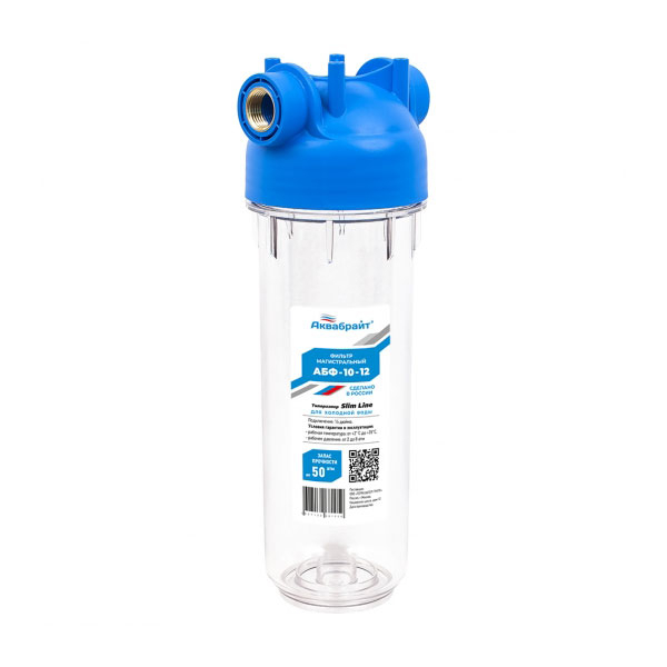 Магистральный фильтр Аквабрайт АБФ-10-12 Slime Line 67-1-542 изготовлен из усиленного полипропилена. Фильтр устанавливается в водопроводную магистраль и предназначен для очистки холодной воды. Эффективно задерживает различные примеси в зависимости от установленного картриджа. Рекомендуется для предварительной очистки воды.