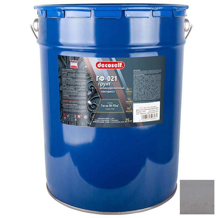 Грунт ГФ-021 Pufas Decoself серый 25 кг - предназначен для грунтования металлических, деревянных (включая ДСП) и оштукатуренных поверхностей под покрытие алкидными эмалями и масляными красками. Препятствует образованию коррозии на металле. Рекомендован для ответственных металлоконструкций. Преимущества грунта ГФ-021 Pufas Decoself: Подходит для наружных и внутренних работ. Подходит для большинства материалов. Экологически безопасен. Высокая стойкость к атмосферным воздействиям. Простота нанесения.