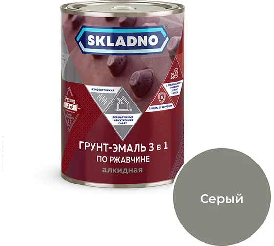 Предназначена для окрашивания чистых и ржавых металлических поверхностей. Состав: модифицированная алкидная смола, антикоррозионные наполнители, пигменты, растворитель, сиккатив, функциональные добавки. Уникальный продукт сочетающий в себе свойства 3-х компонентов: преобразователя ржавчины, антикоррозионного грунта и декоративной эмали. Преимущества: - Возможно нанесение прямо на ржавую поверхность; - Прекращает развитие ржавчины на металле; - Экономит время - Легкая в нанесении.