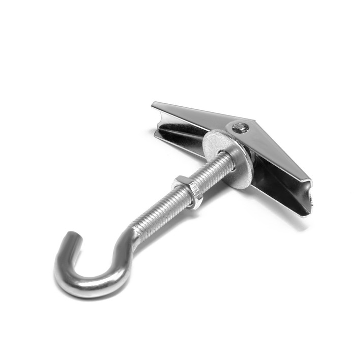 В плите перекрытия высверлить отверстие в пустой канал лепестки дюбеля прижать пальцами к его основанию и завести в канал, где лепестки раскрываются под действием пружины и фиксирутся в раскрытом положении, перекрывая собой диаметр крепежного отверстия для надежной фиксации дюбель затянуть гайкой