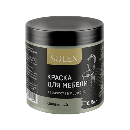 Краска для мебели SOLEX — это прекрасный инструмент для придания вашему интерьеру и мебели совершенно нового вида в кратчайшие сроки. Краска обладает высокой укрывающей способностью, равномерно ложится на различные поверхности, образует бархатное матовое покрытие, устойчива к влажной уборке. Безопасна для использования внутри помещений, в том числе детских комнатах. Применяется для окрашивания элементов интерьера и предметов мебели по новым или ранее окрашенным поверхностям. Подходит для работ по окраске стен и потолков внутри сухих помещений, а также помещений с повышенной влажностью. Краска эффективно ложится на древесину, изделия из МДФ, ЛДСП, ДСП, обои, керамику, бумагу и картон, а также большинство минеральных поверхностей. Не имеет резкого запаха. Преимущества: Обладает высокой укрывающей способностью, равномерно ложится на различные поверхности Образует бархатное матовое покрытие Устойчива к влажной уборке Не имеет резкого запаха Безопасна для использования внутри помещений, в том числе детских комнатах