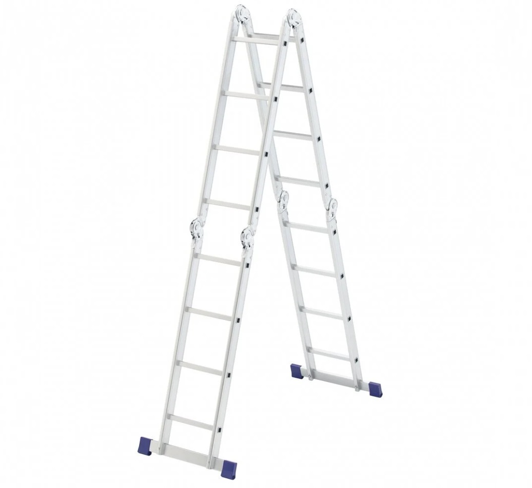 Шарнирная алюминиевая лестница 4х4 может трансформироваться в зависимости от выполняемых работ.Отличается надежной, устойчивой конструкцией, быстрой сменой положения за счет шарнирных механизмов.Защиту от скольжения на рабочих поверхностях обеспечивают заглушки и широкие траверсы.